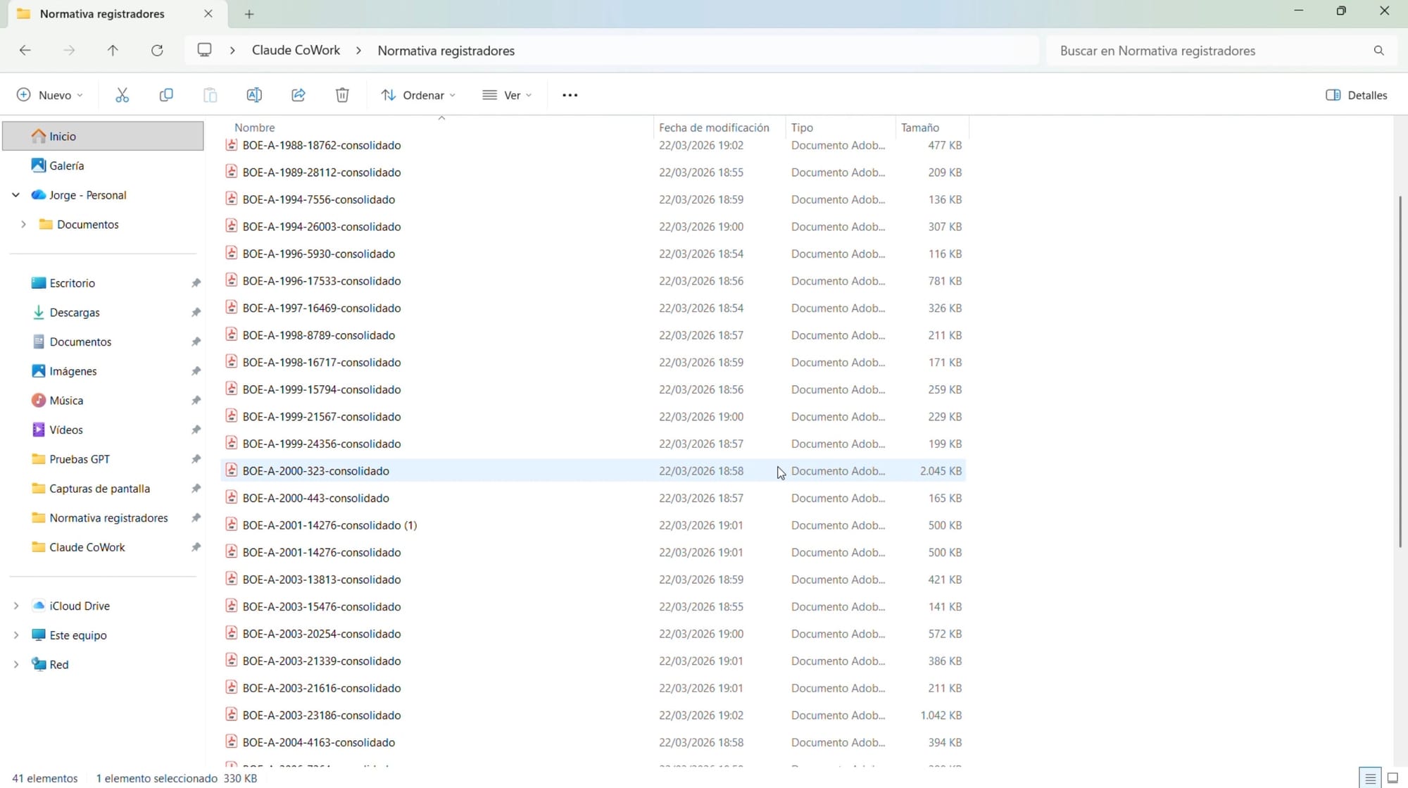 Aquí el caso de uso es que tuve que bajarme toda la legislación registral para una formación reciente (40 normas según el Código de legislación registral del BOE). El problema es que cuando descargas una norma del BOE el archivo lleva un nombre tipo “BOE-A-2015-10565-consolidado”.